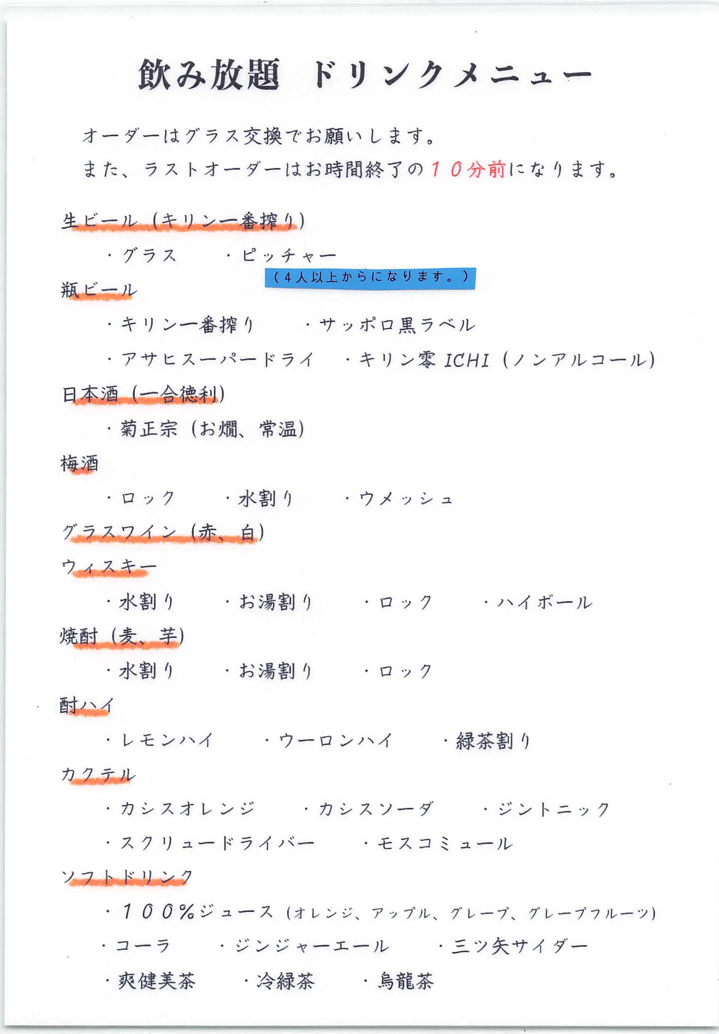 ご夕食時の飲み放題についてご案内致します。飲み放題は下記の通りとなっております。●『90分間飲み放題』 おひとり2,500円●『120分間飲み放題』 おひとり3,000円 (ビール・日本酒・ワイン・焼酎・各種アルコール・各種ソフトドリンク) 同席者全員でのご利用(小学生50%:幼児以下20%)【要予約】となっていますが、チェックイン時のお申し出にも対応致します。